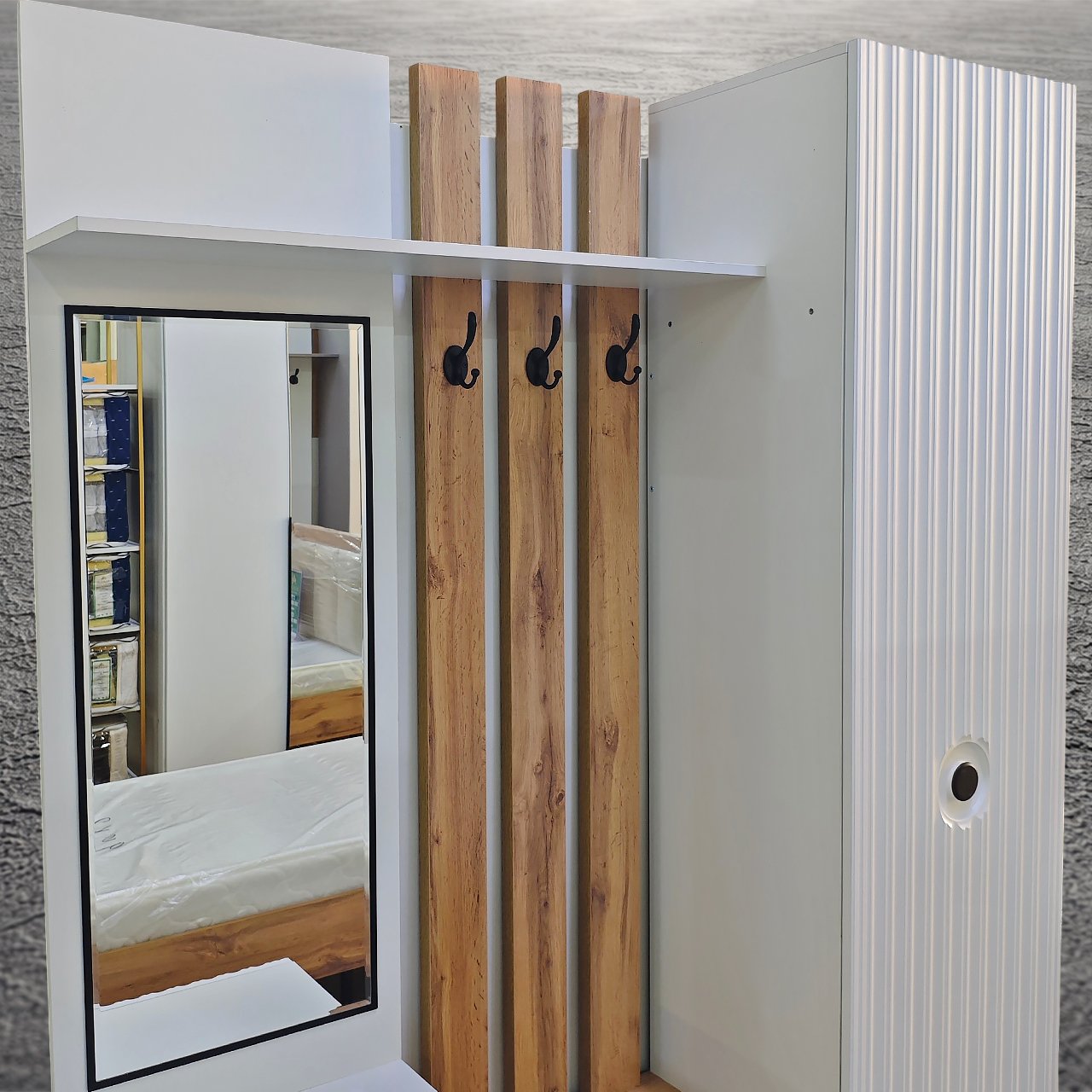 ☄️ Содержит: стенка с крючками для одежды, шкафчики и полки для хранения одежды и обуви, зеркало