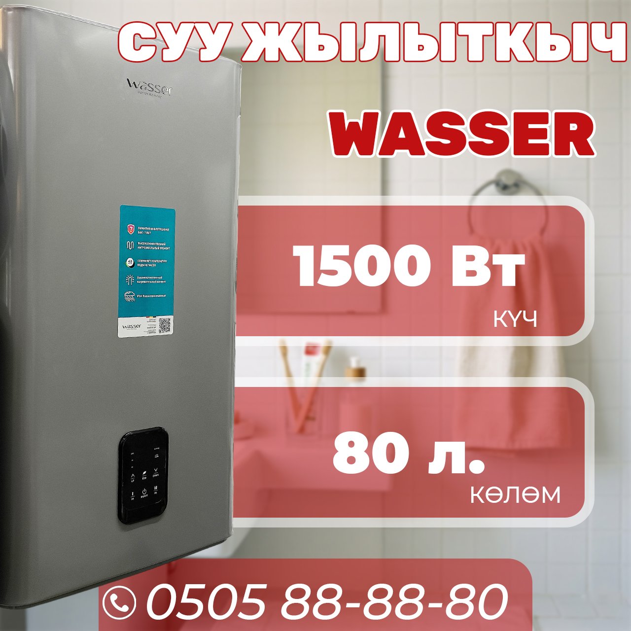 💧Водонагреватель Wasser на 80 литров📞Звоните по всем вопросам: 0509334433, 0508334433, 0505334433, 0552334433
